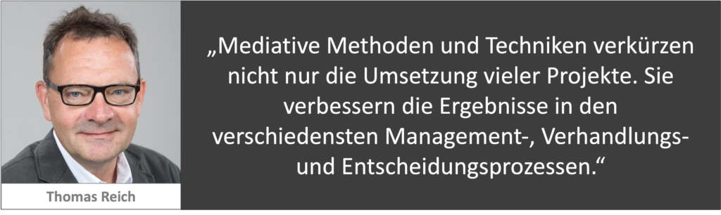 ➡️ Sie haben Fragen zu Mediation und mediative Techniken im Projekt-und Prozessmanagement und möchten Thomas Reich persönlich kennenlernen? Hier geht‘ direkt zu seinem Profil: Zum Profil
